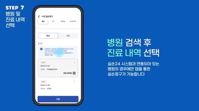기존의 복잡한 과정없이 실손24앱을 통해 쉽고 빠른 실손 보험 청구가 가능합니다.