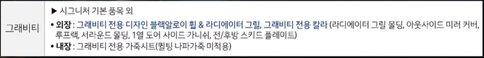 쏘렌토 페이스리프트 옵션 중 주요 변화된 점은, 스포티지와 마찬가지고 '트렌디' 트림이 삭제되고 '프레스티지' 트림부터 시작을 합니다. 트림 구성을 보면 기존에 트림에 옵션 추가하고 트림별 선택 할 수 있는 옵션들이 나줘져 있었는데 선택할 수 있는 트림과 품목이 간결하게 바뀌었습니다.