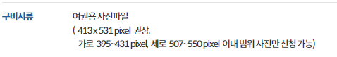여권 재발급 온라인 신청시 준비물은 여권용 사진파일 (413 x 531 픽셀 권장, 가로 395 ~431픽셀, 세로 507~550픽셀 이내 범위 사진만 신청가능)만 준비하면 됩니다.