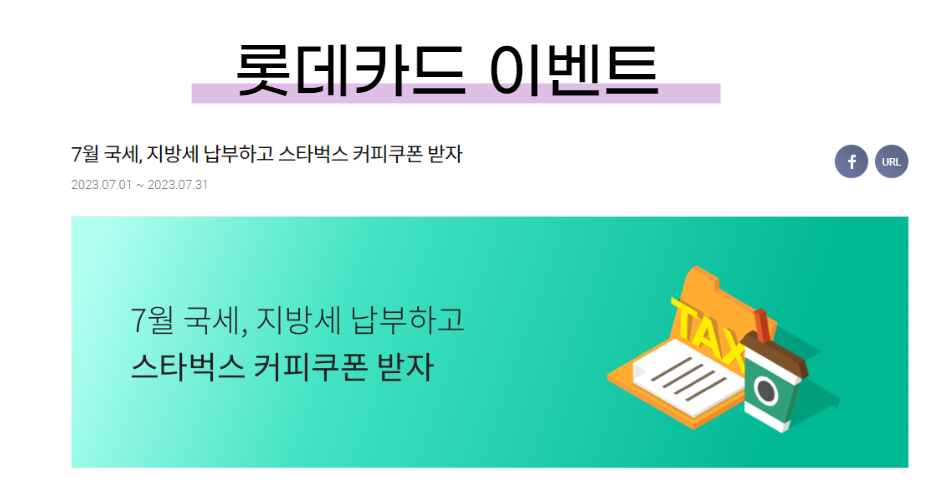 - 혜 택 : 지방세 신용카드 일시불, 체크카드 이용 합산 50만 원 이용 시 스타벅스 아메리카노(Tall) 1잔 쿠폰 제공 신용카드로 지방세/국세 5만 원 이상 납부 시 2~3개월 무이자 할부, 10/12개월 부분 무이자 할부 적용